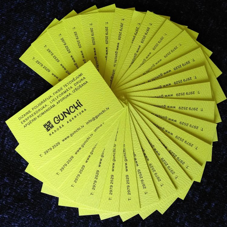GUNCHI radošā aģentūra piedāvā plašu poligrāfijas un reklāmas pakalpojumu klāstu. GUNCHI izveidos jūsu logo, jebkura poligrāfijas darba, iepakojuma vai reklāmas produkta dizainu un nodrošinās tā izgatavošanu atbilstoši labākajiem standartiem. GUNCHI izgatavo vizītkartes, […]