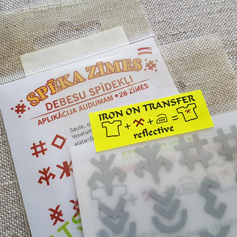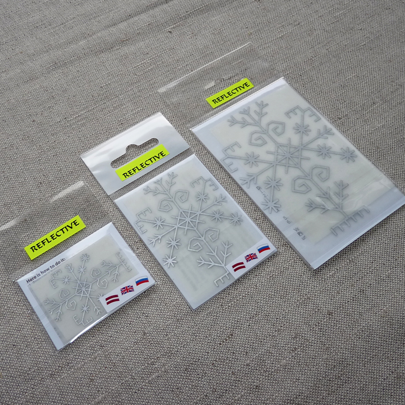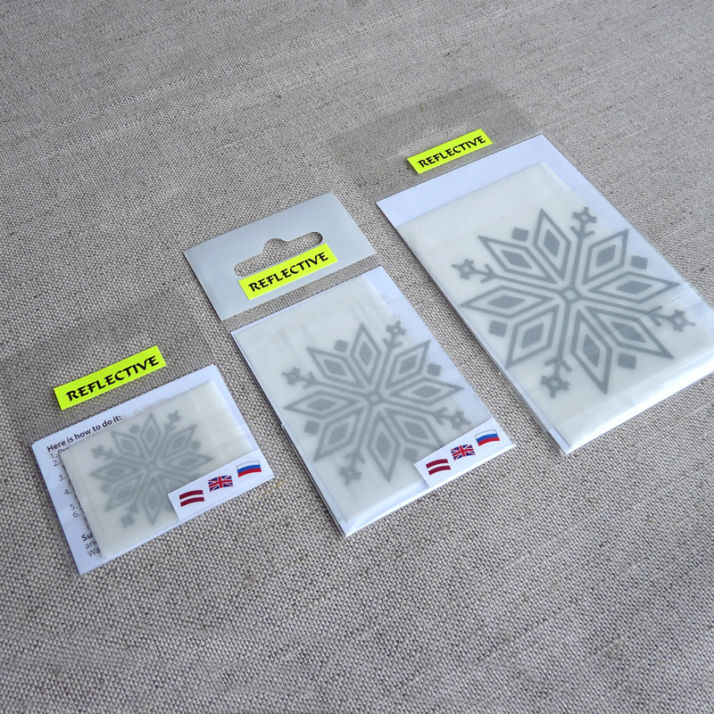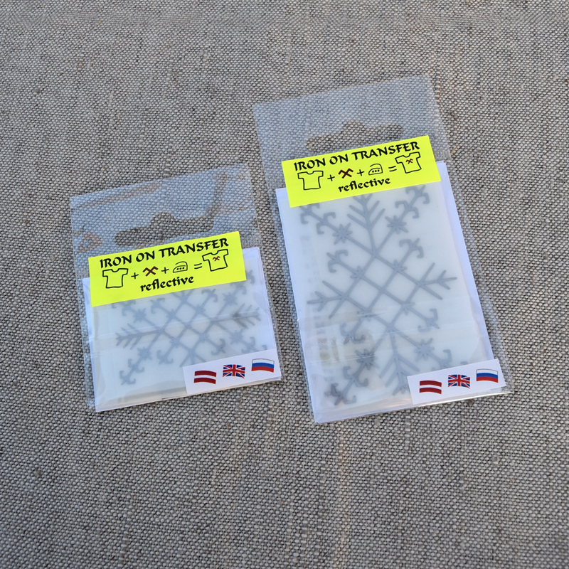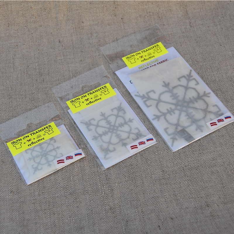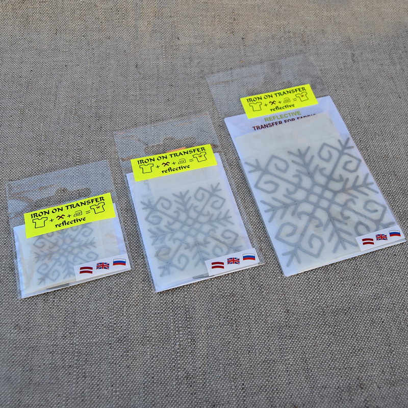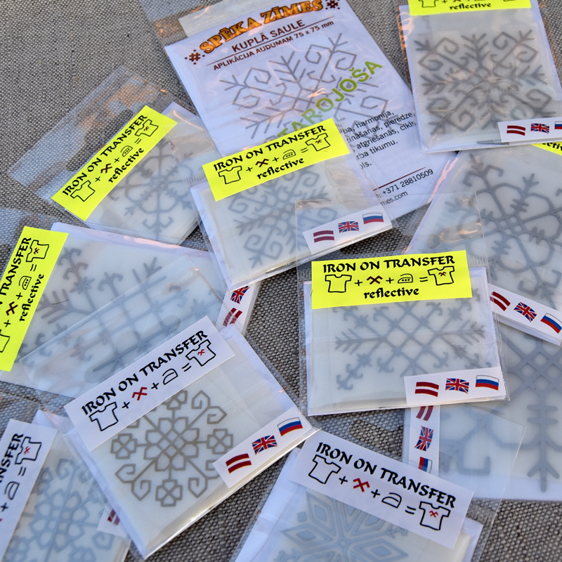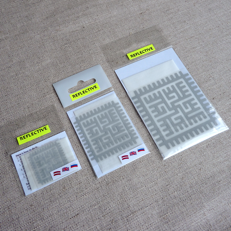 Atstarojošas (kā arī krāsainas vai dizaina) termo aplikācijas pieejamas dažādos izmēros: sākot no 35×35 mm.