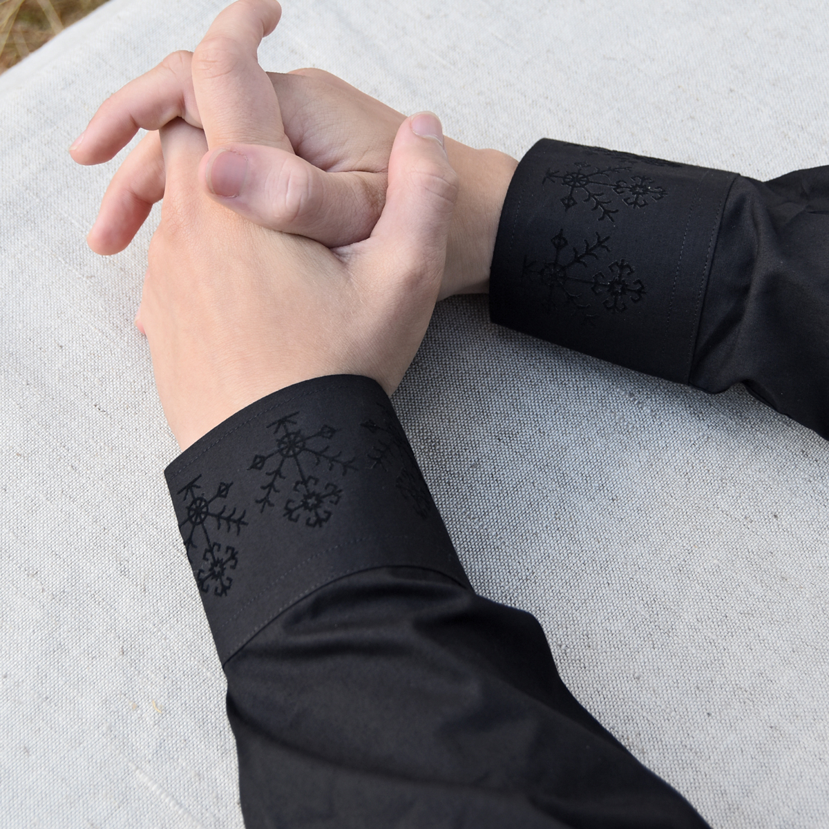 Spēka zīmes rotā arī goda kreklus. Uz pasūtījuma izgatavosim arī sieviešu blūzes ar samta apdruku. Uzlīmes varat iegādāties deviniperkoni.lv un uz krekla vai blūzes uzgludināt paši.