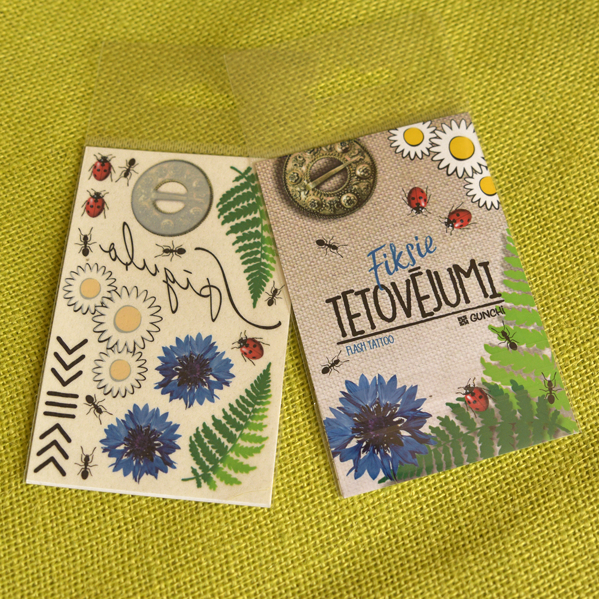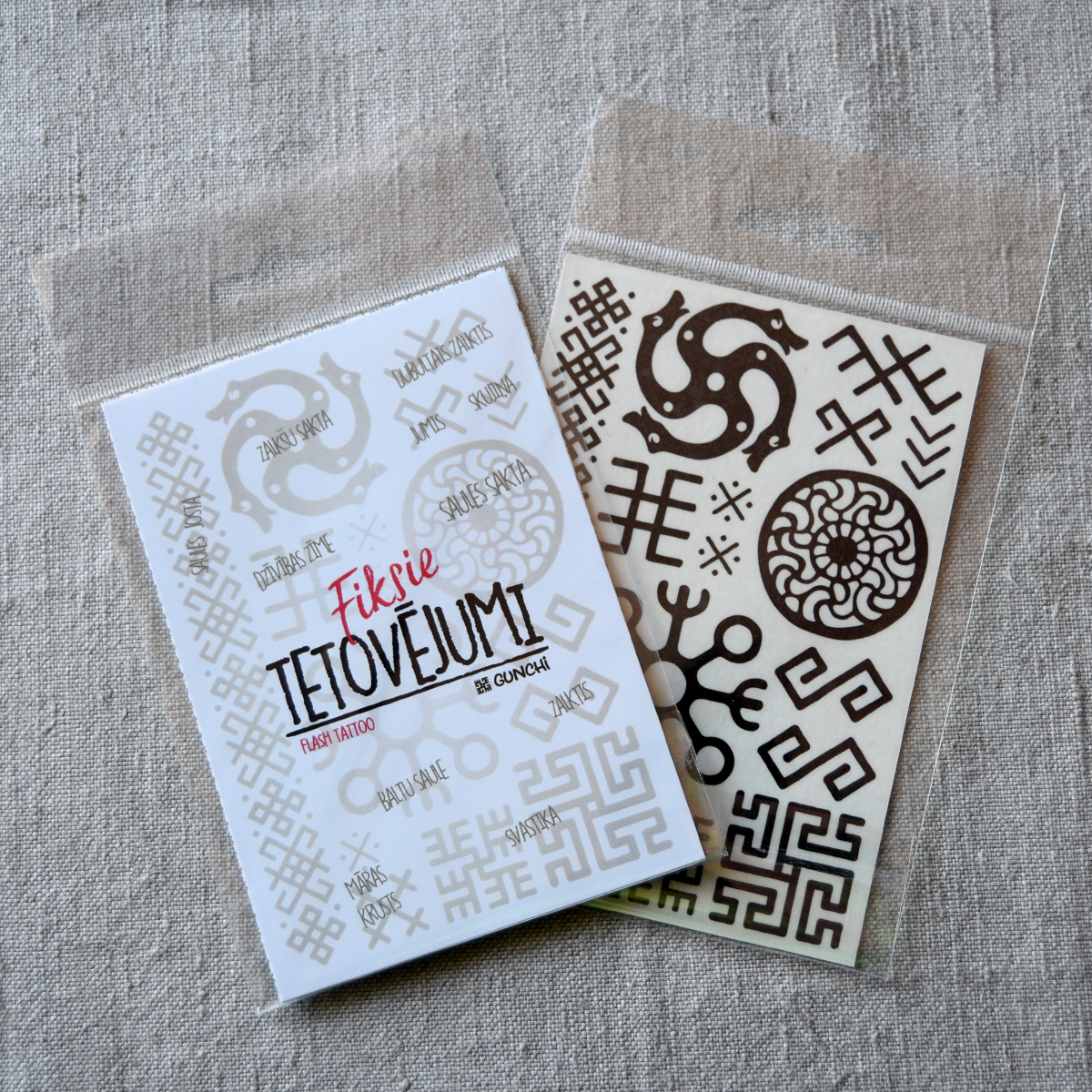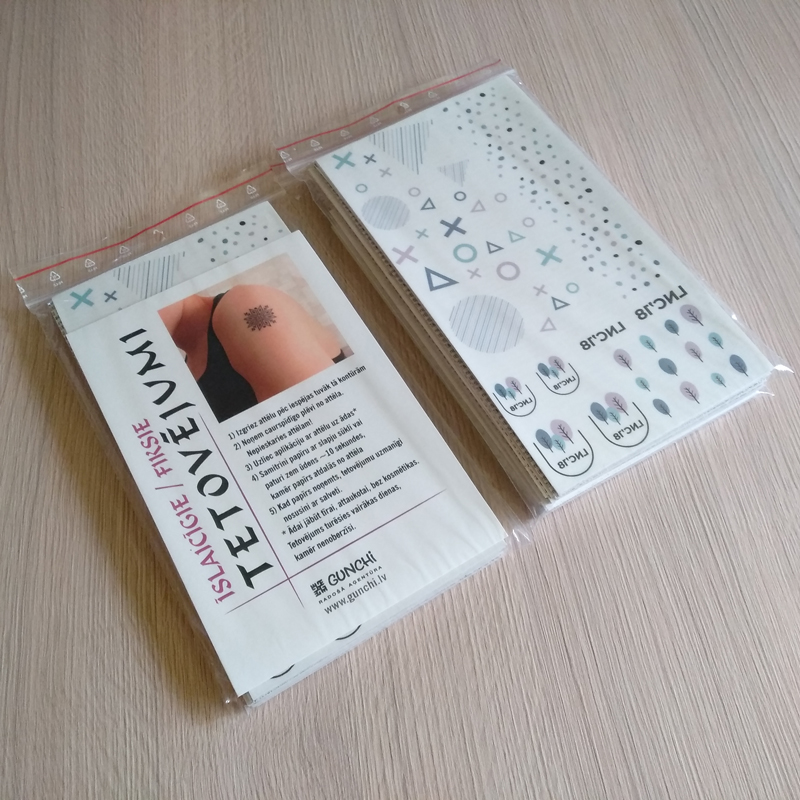 Izgatavojam fiksos tetovējumus ar jūsu dizainu! Fiksie jeb īslaicīgie tetovējumi ir lielisks papildinājums jūsu kāzām, ballītēm, festivāliem, nometnēm, korporatīviem pasākumiem. Izgatavojam gan krāsainus, gan melnbaltus, gan ar baltās krāsas druku. Ūdensizturīgi. Noturība uz ādas vidēji 3 – 6 dienas, atkarīgs no ādas un dzīvesveida 🙂